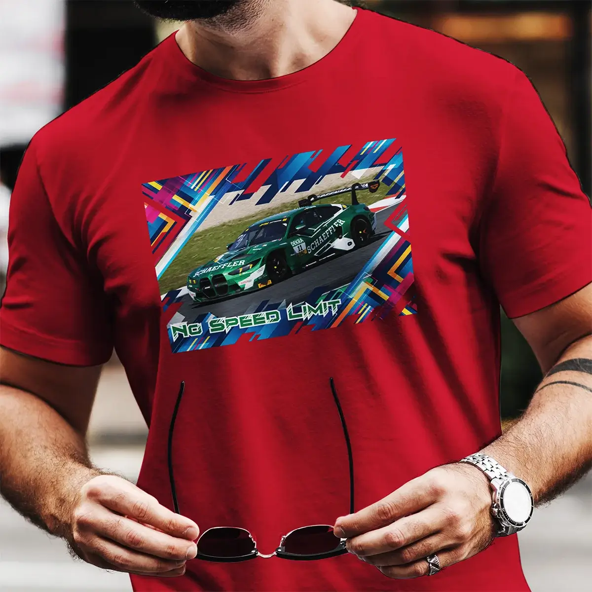 Perfekt für alle, die sich zwischen Boxenfunk, Biergarten und Backseat-Beifahrerplatz stilvoll behaupten wollen. Denn das BMW M4 GT3 Herren T-Shirt trägt man nicht einfach – man lebt es.