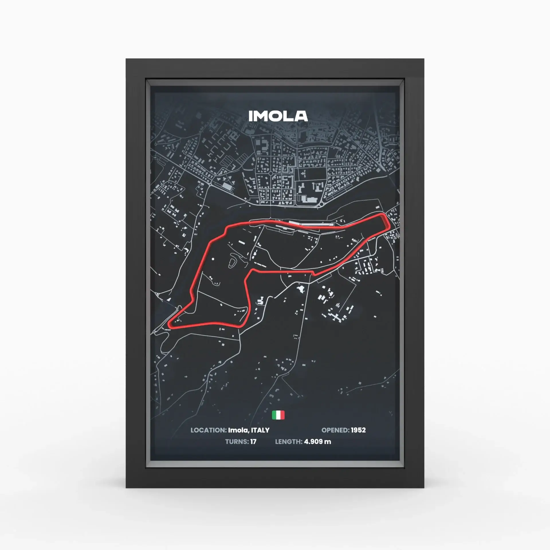 Dieses 3D-Poster verbindet moderne Technologie mit traditioneller Handwerkskunst und bietet eine beeindruckende Darstellung des Autodromo Internazionale Enzo e Dino Ferrari, die jedes Zuhause oder Büro bereichert.