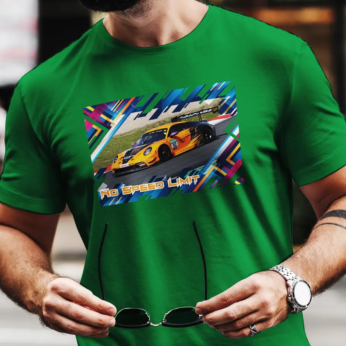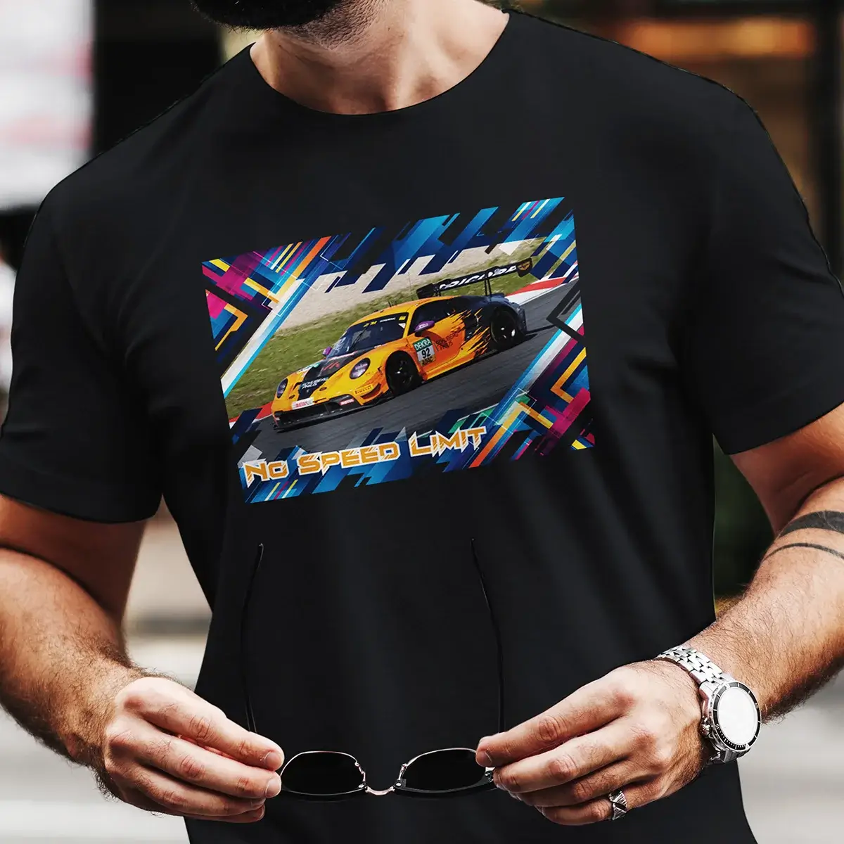 Gefertigt aus 100 % feinster Baumwolle fühlt sich dieses Shirt an wie der perfekte Renntag – sanft auf der Haut, aber bereit für’s Gaspedal. Der GT3 R schreitet kraftvoll über dein Shirt, als wäre er auf Ideallinie wie eine gezielte PS-Attacke – präzise, dynamisch, stylisch.