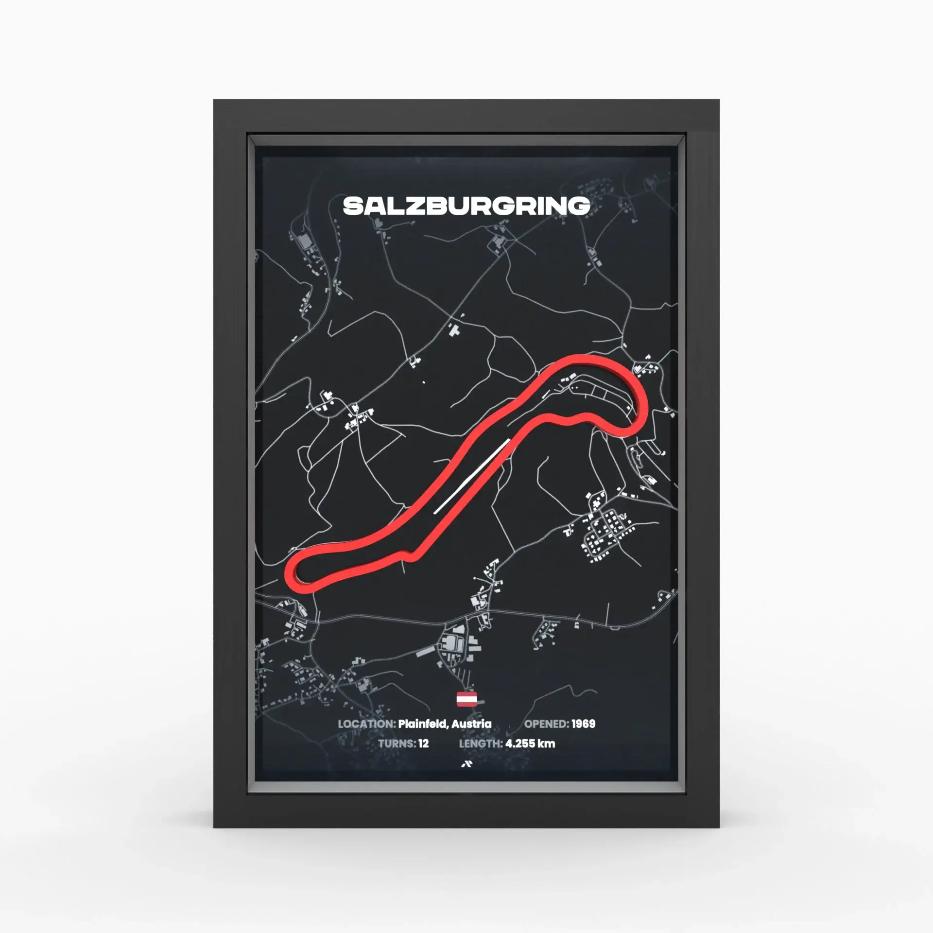 Erleben Sie die Faszination des Salzburgrings – mit diesem exklusiven 3D-Poster holen Sie sich ein Stück österreichische Rennsportgeschichte direkt an Ihre Wand!